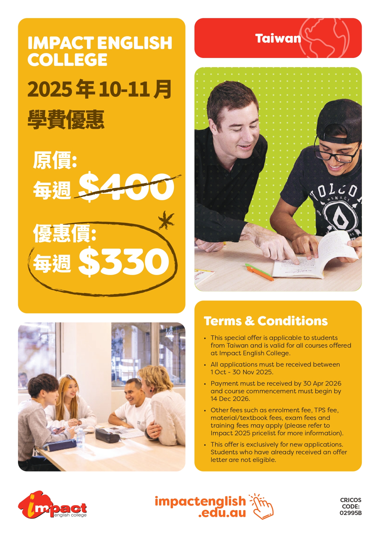☆ 學費 AUD$330/週 (原價AUD$400)