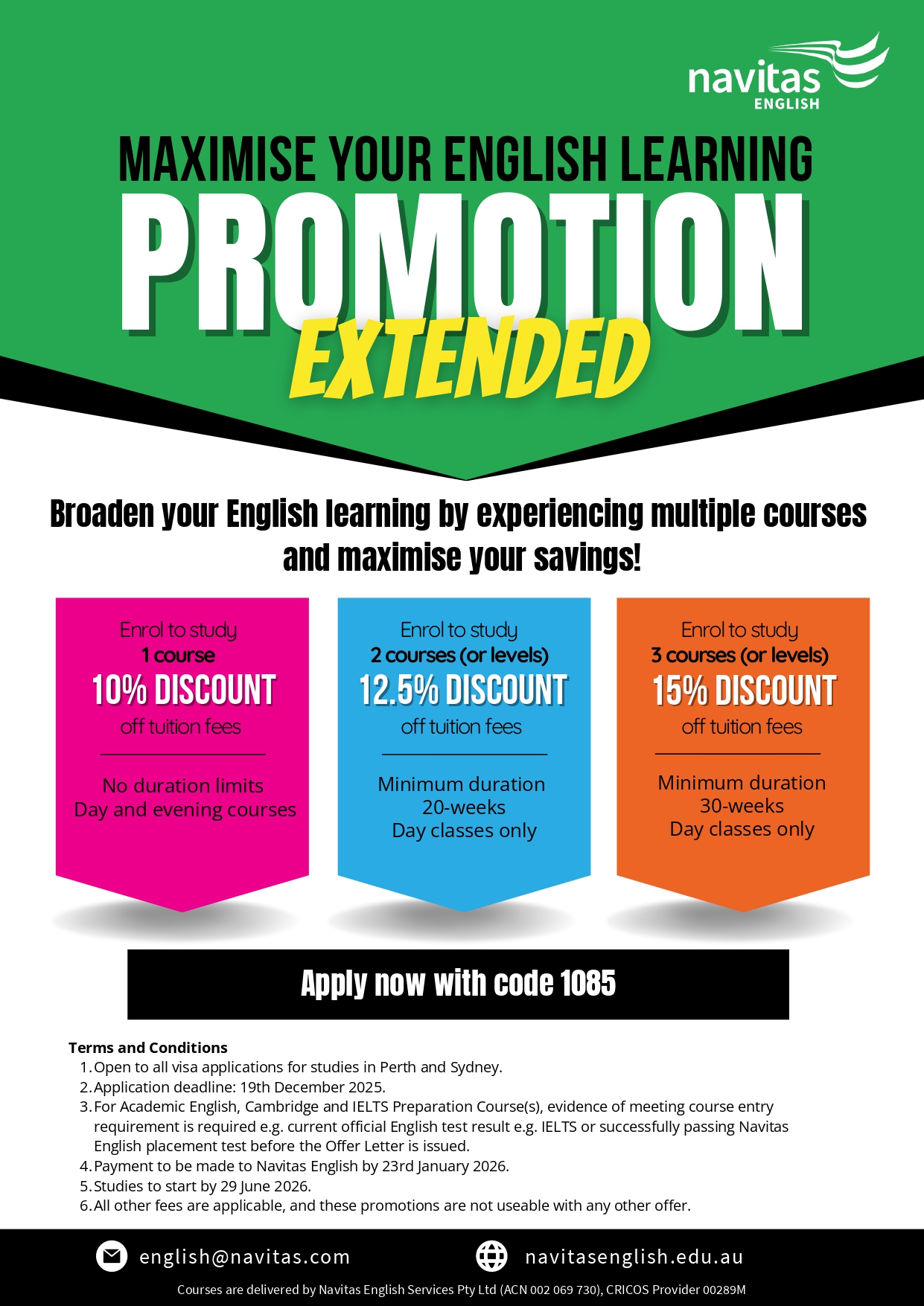 2025 Navitas Promotion 2025 Navitas English 最新優惠 (代碼:Promo Code 1085)